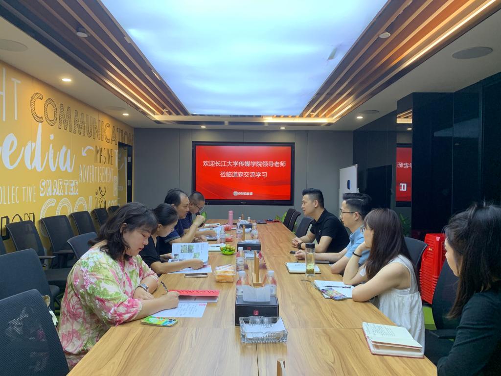 太阳成城集团tyc234cc官网经理邹火明、党委副书记魏红洁、常务副经理郑瑞丰带领数字媒体艺术专业刘书楠老师、广播电视编导专业肖畅老师一行赴武汉道森媒体股份有限公司进行了会谈。