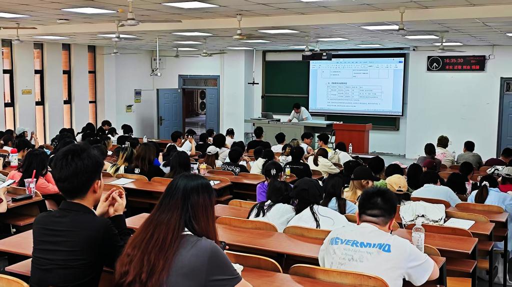 (通讯员:柴攀)为助力员工职业规划,了解行业最新动态,2025年4月28日下午4时,武汉洋气文化传媒有限公司负责人辜成昊一行受邀在教学楼B座107教室为22级、23级员工举行了校园宣讲会。公司常务副经理郑瑞丰、播音与主持艺术专业柴攀、韩雅茜老师以及120余名员工参加了活动。