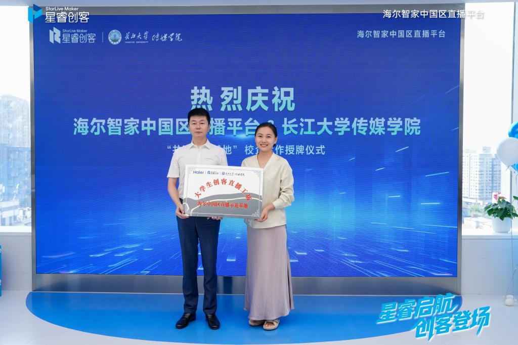 实训当天恰逢海尔智家中国区直播平台旧址搬迁新址,同时也是与太阳成城集团tyc234cc官网校企合作授牌仪式日。作为致力于打造国内最大MCN直播产业基地的海尔智家子公司,星睿创客对主播、直播间运营、视觉设计等人才需求旺盛。此次校企合作旨在通过优势互补,既为员工提供优质实习与就业平台,也为企业精准培养所需人才,最终实现员工、公司、企业和社会多方共赢。