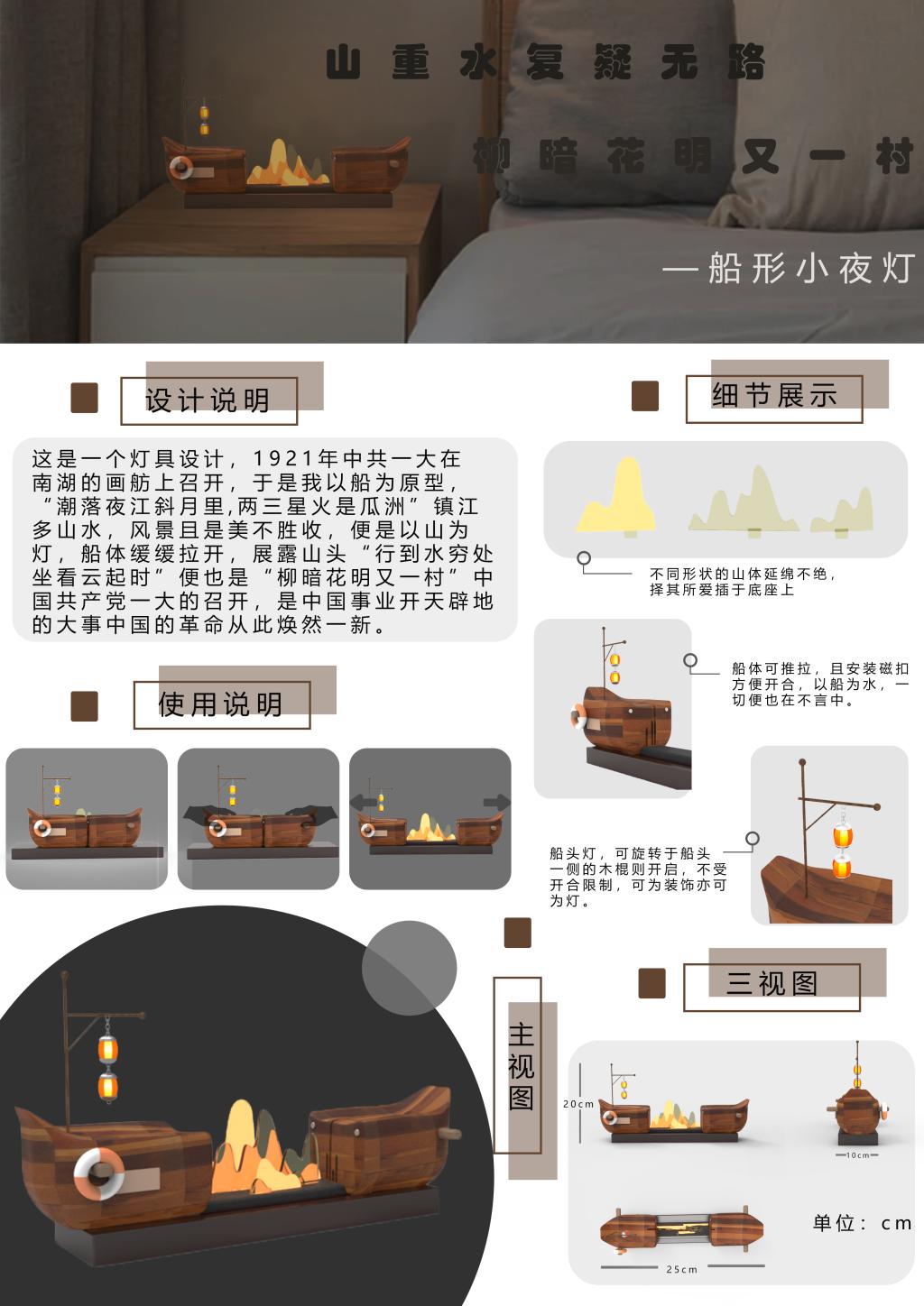 产品设计作品:《“山重水复疑无路,柳暗花明又一村”船型小夜灯》-万杰林